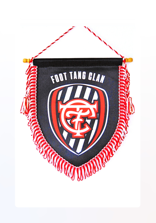 bold lettering and colours that really stand out make them easier to read from further away. Custom pennants usually have the badge in the middle, and the words curved above or below to make it look symmetrical.